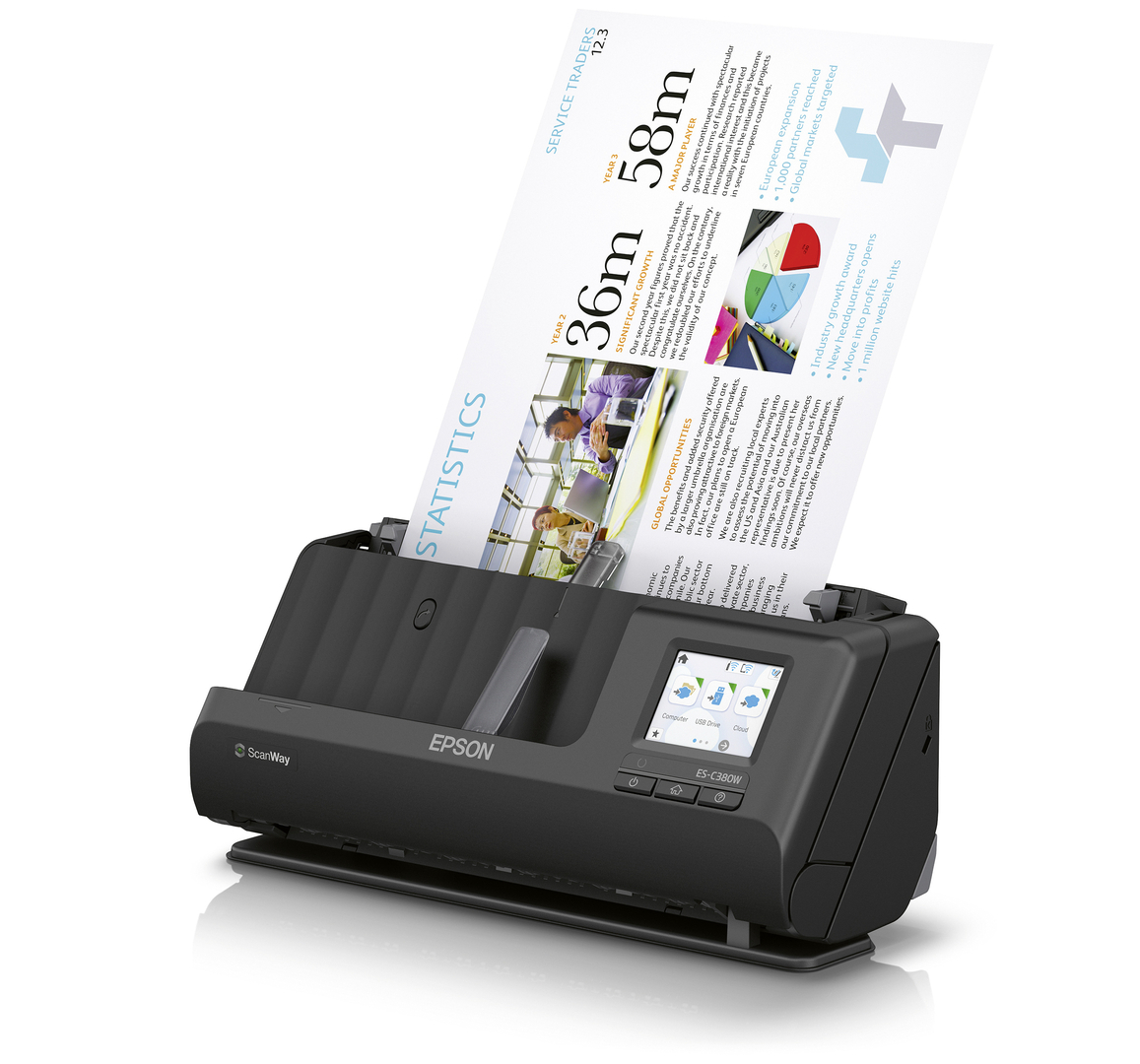 Huge strides have been made in office technology over the past few years. Devices are becoming more and more compact, whilst simultaneously offering multifunctionality to meet a wide range of requirements. Compatible with a growing number of interfaces, they are increasingly at the heart of digital document management. The new line of highly sophisticated, efficient scanners from Epson – ES-C320W, ES-C380W, DS-C330 and DS-C490 – is no exception. The devices seamlessly file scanned data in network folders, on USB sticks, or – with or without a computer – in the cloud. Intuitive operation via a colour touchscreen makes this task wonderfully straightforward. The compactness of the devices is difficult to beat, as their U-shaped, vertically aligned paper path minimises their footprint. They can also be positioned directly alongside the wall during scanning mode. Both of these aspects are ideal features for a work environment where space is limited, or for work at a service counter. Thanks to an easy-to-use lever on the back, the devices – and this is a real highlight – can be tilted towards the horizontal, transforming the paper path from a U-turn path to a straight one. In this mode, documents up to 5 mm thick such as bound ID documents can be scanned flat. The jury was thoroughly impressed: “With its ES-C320W, ES-C380W, DS-C330 and DS-C490 scanners, Epson has succeeded in producing an ultra-compact, adaptable and visually appealing design solution which achieves maximum functionality while requiring minimal space. Moreover, they successfully link to the Epson brand identity.” The scanners’ subtleties are also impressive, for example the special protection they offer original documents. If something is in the way during scanning, such as a staple, the document feed is stopped immediately. Functions for improving the clarity of the text or for optically removing signs of tears, shadows at the edges or punched holes are available, as are tilt correction, merging to A3 and automatic colour improvement. With their focus on miniaturisation and low electricity consumption, the scanners also contribute to a reduced ecological footprint.