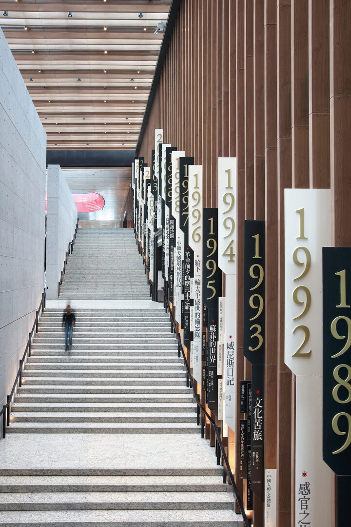 Based on the concept of an aesthetic living gallery and a lifestyle Mecca with a 72-step grand staircase winding through this temple to the written word, the Eslite Spectrum Suzhou features a prelude to the bookstore, a performance hall and other shopping opportunities. It was thus meant to emerge as a space infused with a sense of ritual and appeal. This was achieved through the use of minimalist design elements like soaring wooden grilles and stone steps that expand on the building itself. Perpendicularly designed to the lines of motion, the concrete walls, wooden lattices and linking bridges engage in a dialogue with the space.