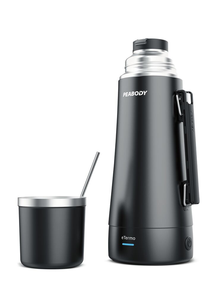 eTermo is an all-in-one product for preparing and enjoying mate. Its special feature is that it also heats the water. The kettle can then keep the drink hot for hours. The kettle lid is vacuum insulated and serves as a mug. The holder for the pipe or bombilla made from stainless steel, the typical straw made from metal with a sieve at the lower end, is integrated in the side of the eTermo. The heating function is operated using a single button. The kettle is available in various colours.