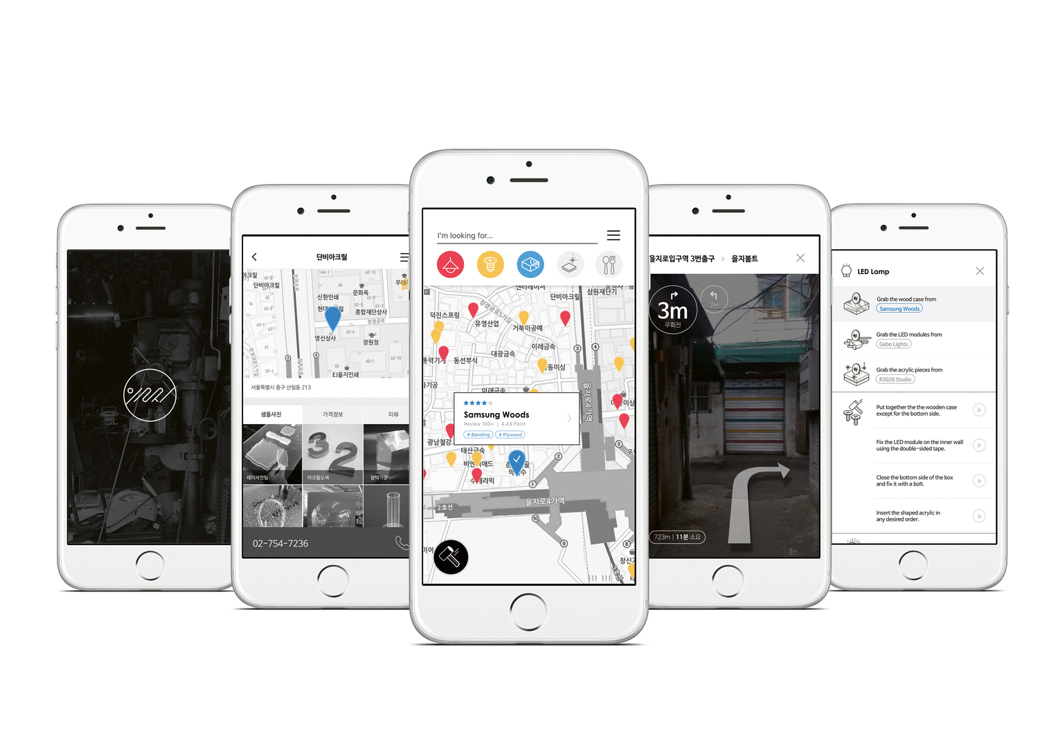This app aims to help people of various ages gain access to the district of Eulji in Seoul City. Functioning primarily as an industrial and commercial area, the district is marked by complex geographical features and has the re-putation of being dark and difficult to navigate. The augmented reality app Eulji Road aims to change this by providing maps and information, for example about local shops. Furthermore, the project includes a dictionary explaining the difficult jargon used in the district. Users can also leave reviews after their visits.
