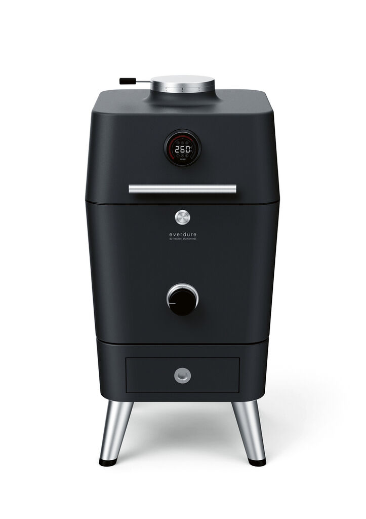 This charcoal barbeque impresses with its high level of efficiency and ease of use. Formally, it is inspired by a traditional design language.