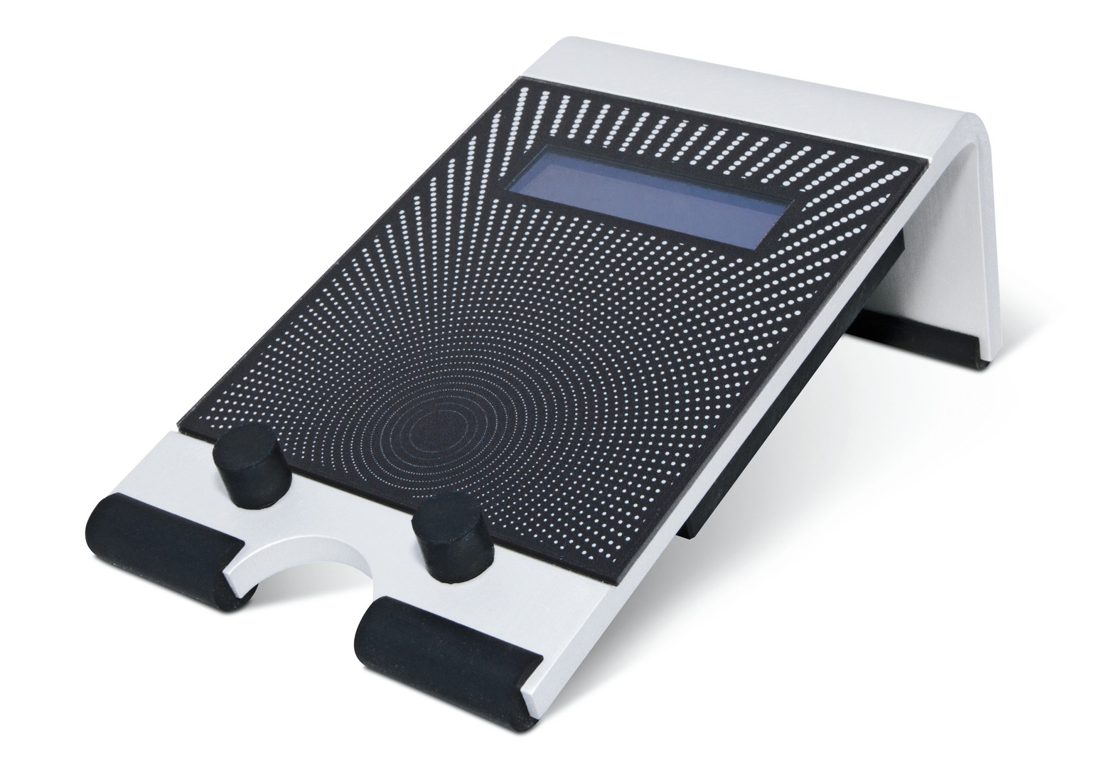 The Evis Manta is an RFID card reader, which is connected to a POS cash register system in order to communicate with electronic data storage devices such as keys, cards and NFC-enabled smartphones. The ray-like pattern on the glass surface indicates the position of the RFID reader field. The two-line display, which is backlit in a subtle blue, guides the customer safely through the sales process. The aluminium housing has a solid weight, which lends it positioning stability.