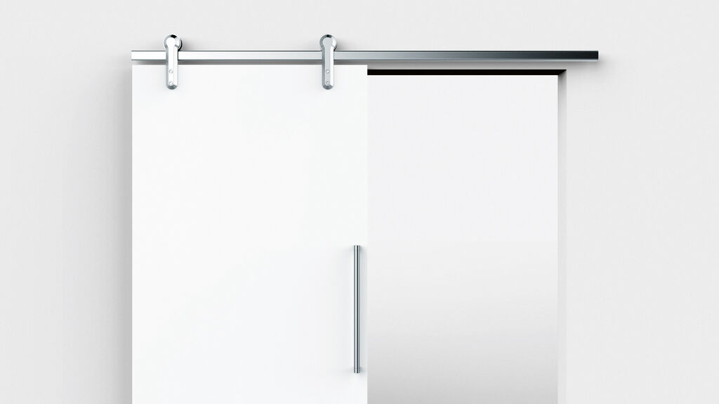 Inspired by traditional barn doors, the EVO sliding door system is suitable for both wooden and glass doors. Its luxurious sheen creates a contemporary but at the same time elegant image. The system is equipped with shock absorbers and is characterised by the gentle gliding motion of the door. Installation is easy and only requires one person simply to attach the aluminium elements to the wall and then mount the rail and the rollers.