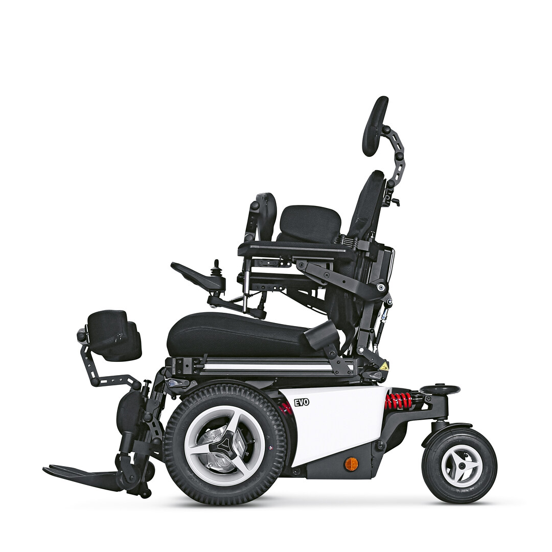 The wheelchair Evo Altus enables the user to communicate at eye level with their counterpart. It provides a tailor-made standing function, and improves physical strength and self-confidence of the user. It is easy to maintain and service the chair. The front-wheel-driven chassis and the swing-away joystick make the surroundings more accessible and everyday life easier. Evo Altus combines high functionality with good looks and gives much independence to the user.