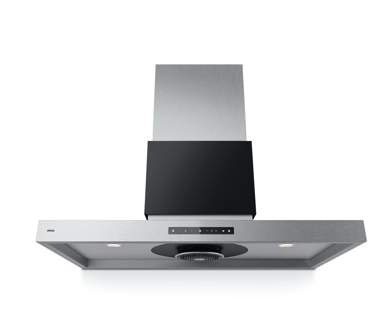 The distinctive feature of the Evolve range hood is a black sleeve around the extractor shaft. It is the visual expression of an innovative technology applied in the hood and conceals its output openings. Evolve possesses a specifically developed, filterless motor-fan combination, which separates the substances such as oil, fat and moisture contained in the fumes with an efficiency of 96 per cent. Furthermore, the hood is extremely quiet.