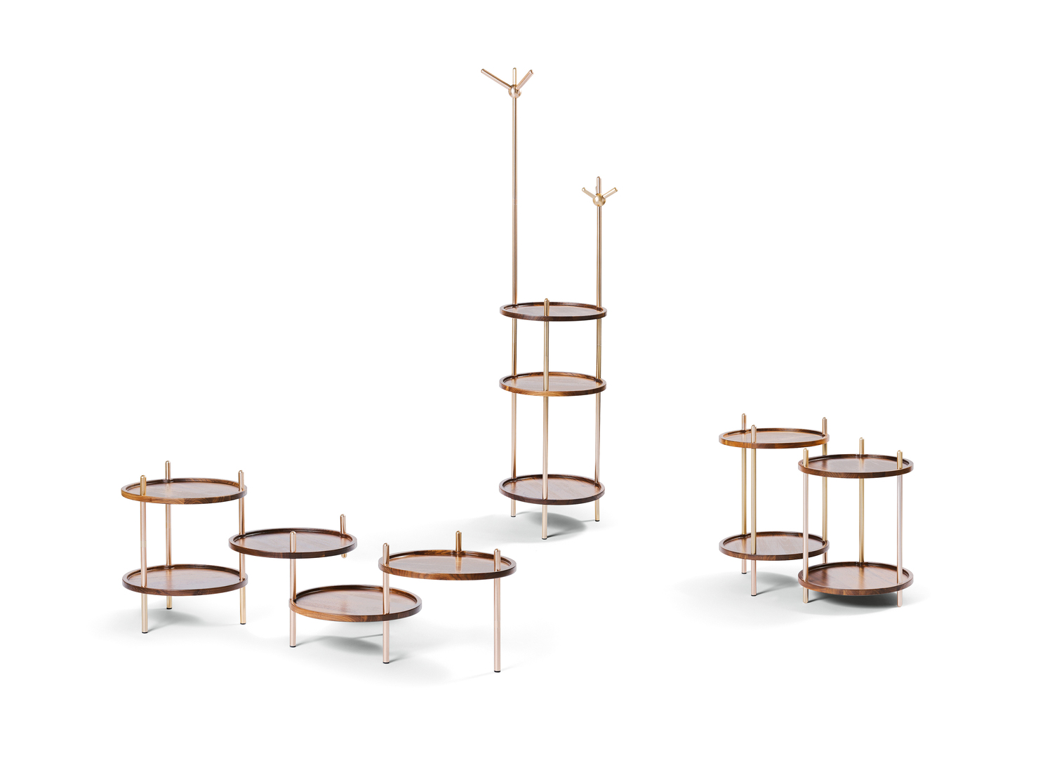 The design of Exclamation centres on the interaction between man and furniture. With the help of ten different components, users can create a piece of furniture to match their individual needs; for example, a wardrobe, a side table or a shelving unit. Assembly is easy and no tools are needed. Thanks to the balanced interplay of delicate aluminium and high-quality black walnut, the resulting furniture item always looks harmonious. It can be dismantled and reassembled in a new shape again and again.