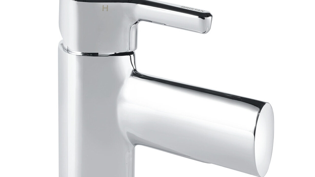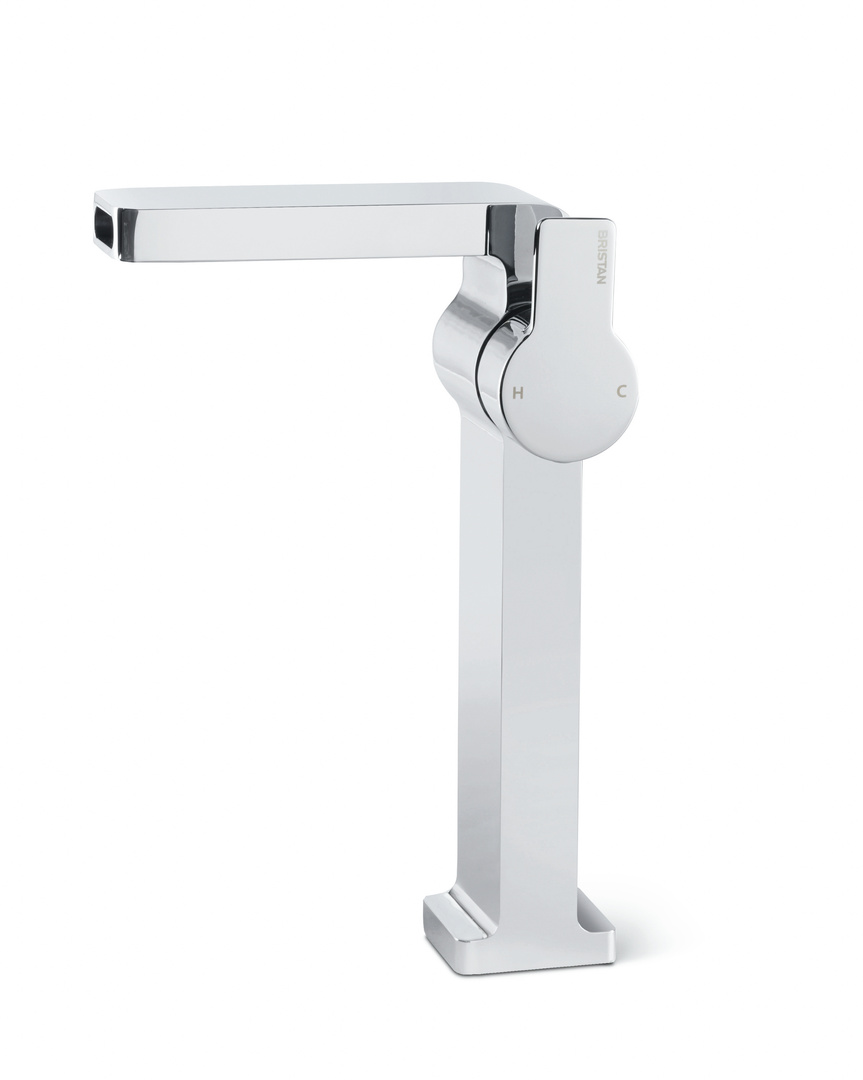 The softly rounded square shape of the body is sharply interrupted by the cylindrical form that houses the water cartridge. That the control exactly matches the side profile of the body emphasises the geometric precision and simplicity of the overall design of the tap. The ergonomically well-adapted element enables easy control of temperature and flow. The water outlet guides the jet directly to the front. Technical components inside allow the jet to pour out into the basin in the form of a waterfall bow.