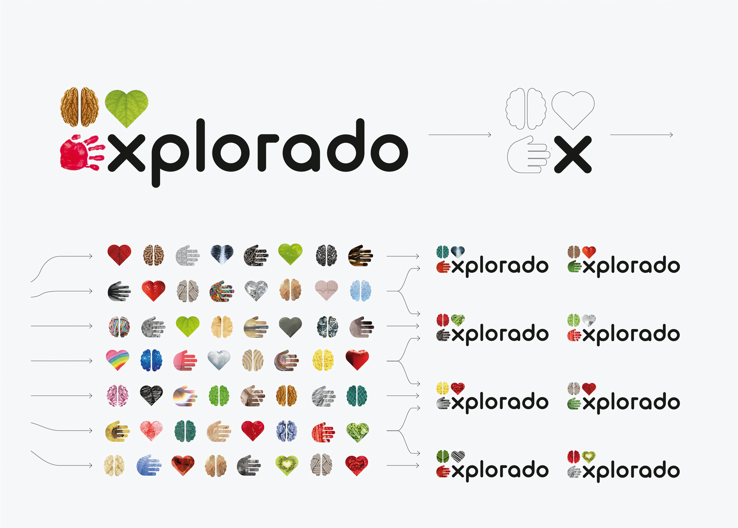With Explorado, a children’s museum opened its doors in the historic architectural setting of Duisburg’s inner harbour. With the motto “being smart is fun”, the museum presents exhibits of various areas of interest. The corporate design focuses on characterising the vitality and complexity of the project, whilst addressing children as a serious target group. The basic components of the logo – the icons of a heart, a hand and a brain – stand for the didactic concept of learning with all senses. The shape of each icon is used as a frame that can be filled with constantly new and changeable image content. The icons are also used as graphical elements which appear in a playful way in various media.