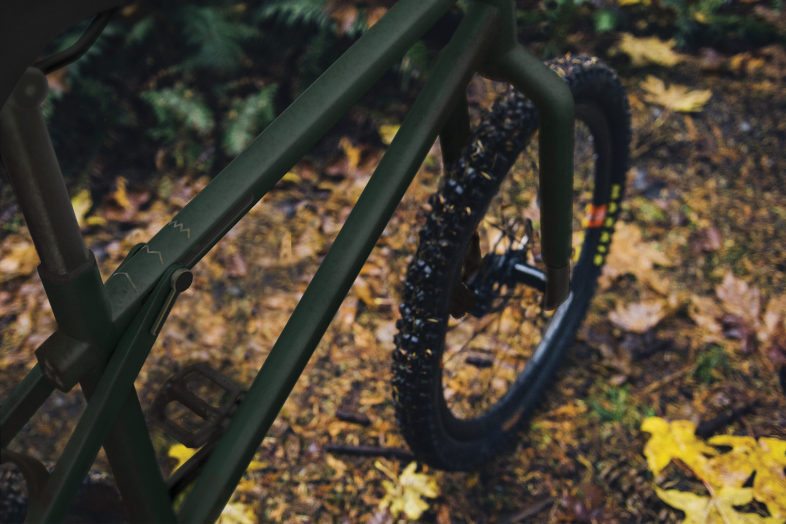 For a simpler and less expensive bicycle, the design of the hole production system had to be revised. The use of steel instead of carbon fibre or aluminum reduces the bicycle’s price and its environmental impact. The custom tubes’ section allows an easy assembly and a better weight-to-resistance ratio. Lowering the production and maintenance cost also led to the design of certain details: the same standard air cartridges are used for both front and back suspensions, and only one type of bearing is used in both the head set and the bottom bracket.