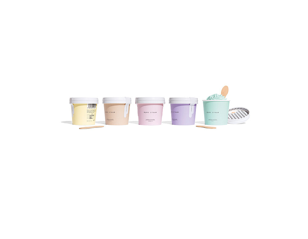 Based on the classic American ice cream container, the packaging design for this new concealer series called “Eyes Cream” follows an original design idea. The cups sealed with a paper band highlight the special feature of the eye-care cream, which is stored in the fridge, thus cooling the eye area and providing a decongesting effect. Trendy pastel colours characterise the five different “flavours” – mint, raspberry, vanilla, blueberry and chocolate – with their names conveying the product concept. In order to apply the cream hygienically, the lid contains a wooden spatula.