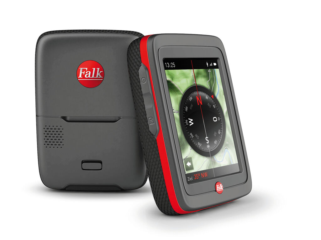 Falk Ibex is a robust and light outdoor navigation system with a matte display, routable maps, and intuitive, menu-driven operation for planning leisure activities. Key elements include its flush, ergonomic form and an integrated holder. Another striking feature is a non-slip rubber ring, which protects against shocks and falls and allows the device to rest safely in the hand. Besides its functional aspects, the latter element lends the design originality and personality.