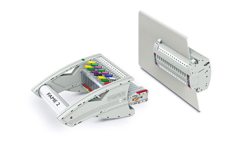 FAME, which stands for Fast and Modular Energy System, is suitable for all measuring and control tasks in the area of mains protection for medium- and high-voltage switchgear. Current and voltage transducers as well as tripping and signal contacts are combined into a single plug. The three different contact tab lengths guarantee a safe forced switching sequence. The twist grip mechanism ensures smooth insertion and removal of the plug and prevents undefined contact states.