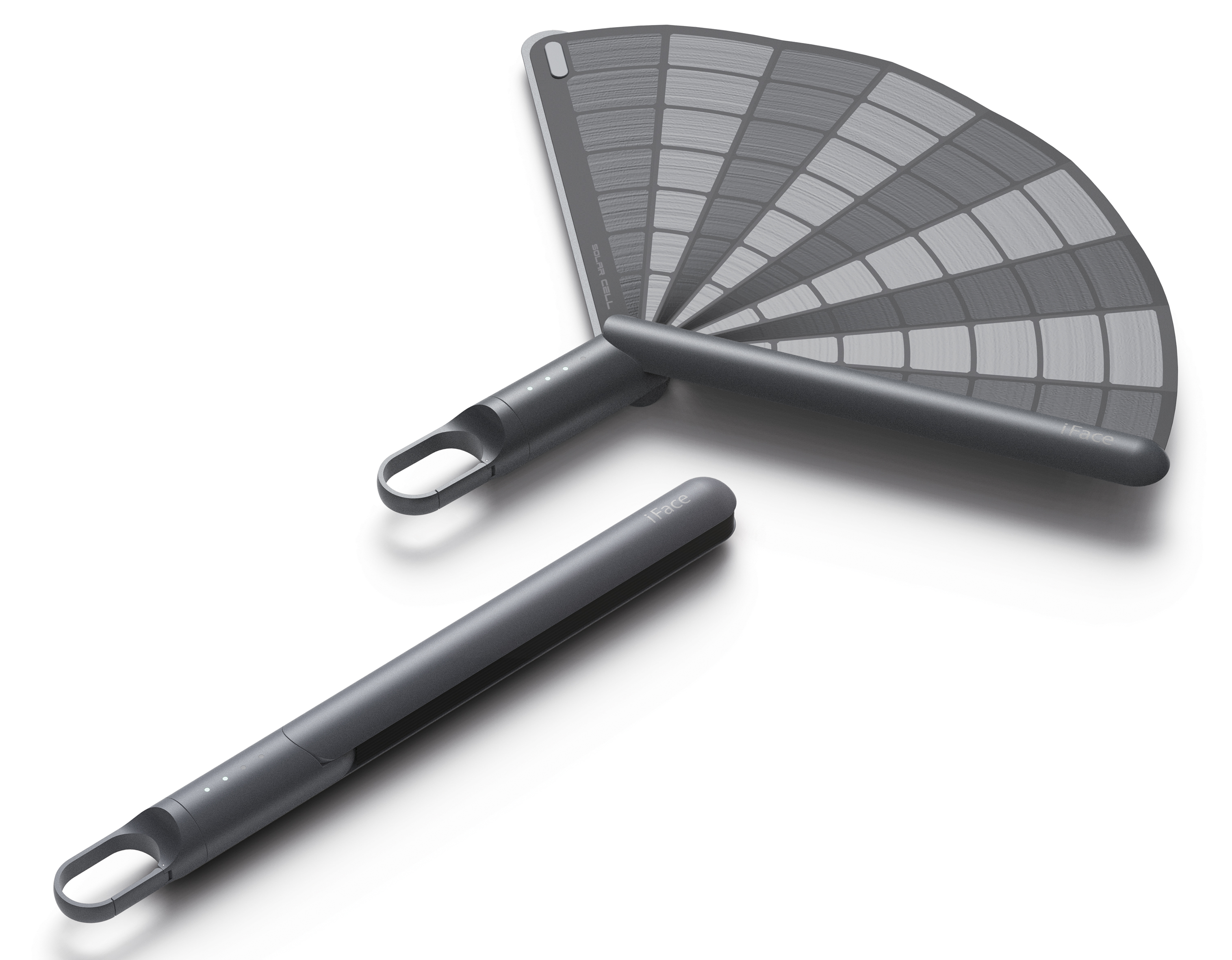 As a solution, Fan+A Sticks proposes a new way to make photovoltaic power banks more portable. The solar panels can be folded neatly into a sleek and compact little stick, just like a hand fan. Simply fan out the solar panels to absorb more solar power, or use it charge a device. A carabiner feature added to one end of the stick provides even more portability and convenience.