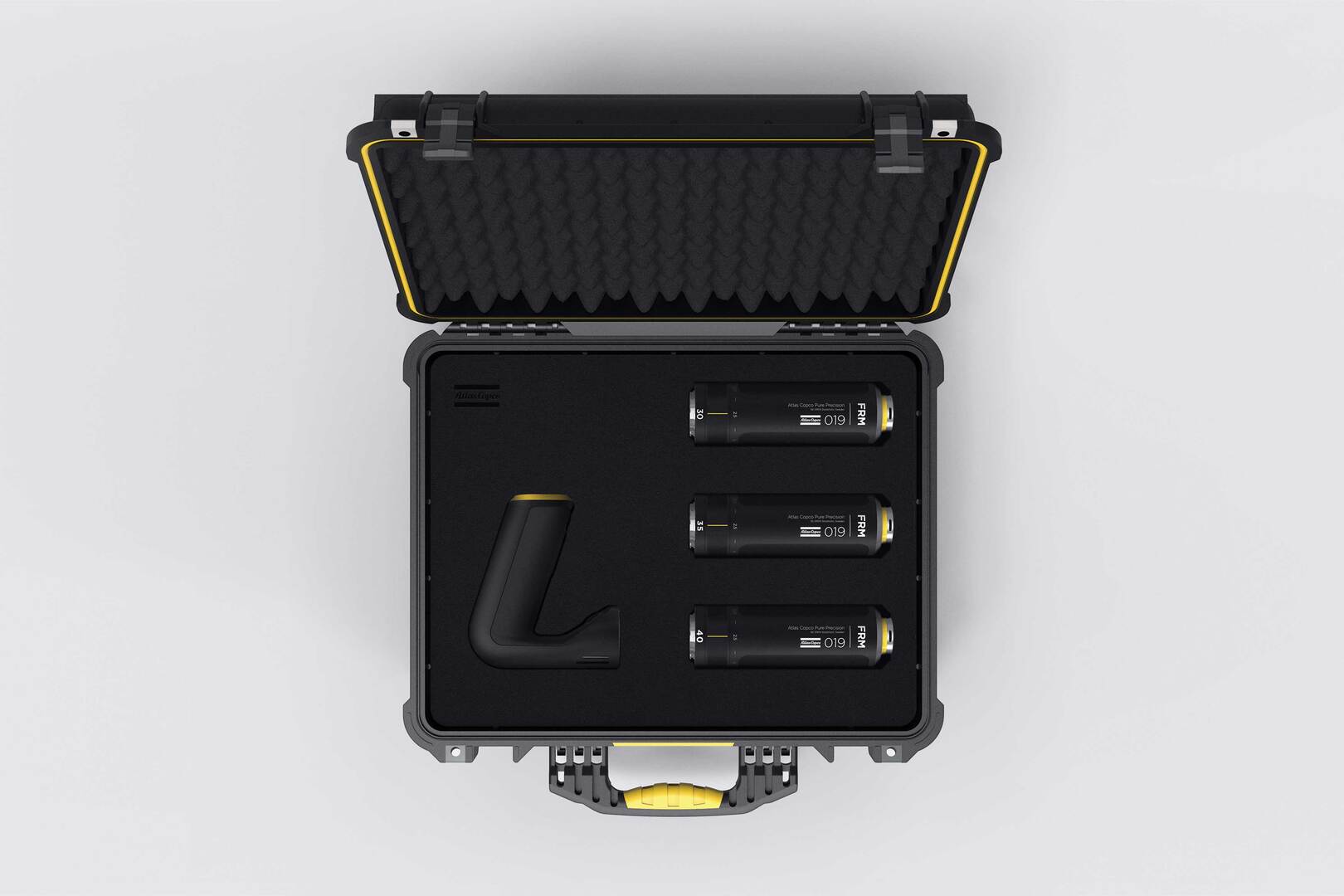 One of the biggest problem sources of production and maintenance in the aerospace industry are the fasteners. On average, there are over 1 million fasteners used in every plane. Even if only 0.01% of the fasteners need to be changed, that still equates to an average of 1012 hours of work per month – the monthly workload of six operators. Removing fasteners is extremely difficult since the surface of the plane needs to remain unscratched. The FRM-019 greatly simplifies the process of removing incorrect fasteners by precisely milling down the fastener to up to 0.01mm (this gap is adjusted by a ring on the tool). This is important since different materials are used and the milling-bit should never scratch the plane. The tool also solves other problems of manual removal like having to skilfully hit the fastener exactly at a perpendicular. In contrast to the competitor, the FRM-019 needs only 3 different mill-heads to cover almost 90% of all fastener sizes. For easy maintenance, the handle contains all the electronic parts while the tool-head contains the mechanical parts. To not lose any precision with the tool-bit, only the complete tool-head is supposed to be changed. Red Dot Award: Design Concept | Concept | Industry & Tools