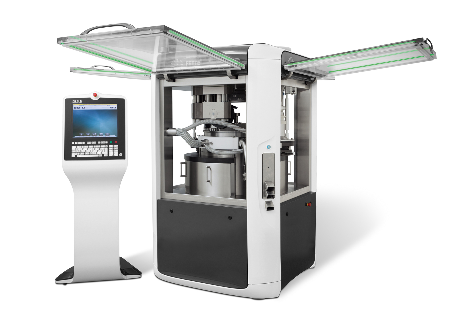 The formal language of the tablet press, with its rounded edges and ergonomic design, turns its highly functional quality into an immediate user experience.