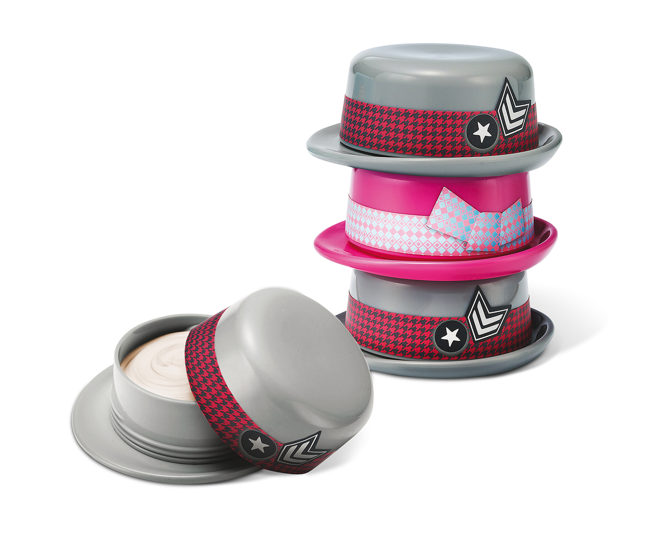 Targeting youth between 16 and 20 years, the global cosmetics brand Etude distributes their products in 11 Asian countries, including Korea and Japan. The Fedora Hair Wax series features fedoras as a key design motif. The packaging consists of a container made from one single material. Different labels can be wrapped around it without any extra post-processing. It thus has a reasonable price, which makes the hair wax accessible to young customers, allowing them to enjoy hairstyling just as they would wear a nice fedora for a great day.