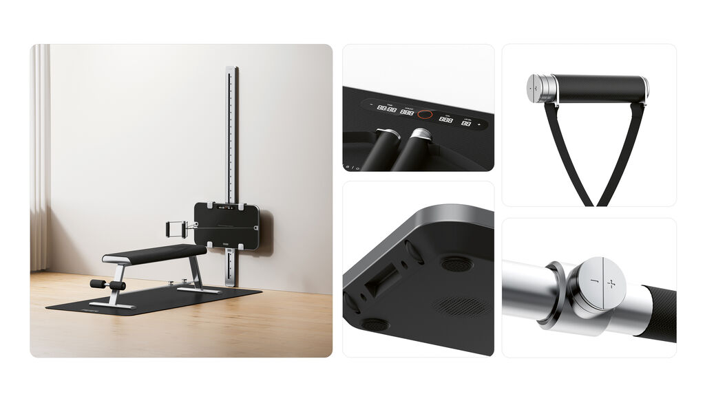 The FEIER Halo Strength Studio is a compact strength-training device with digital controls. The resistance can be individually adjusted between 36 steps in less than a second – via touch or Bluetooth buttons. With a weight of just 15 kg and a depth of 5.8 cm, the device is easy to transport and stow away. Accessories such as handles, a long bar, leg straps and a training bench allow versatile exercises for all six main muscle groups. The accompanying app records training data and creates custom reports and training templates.