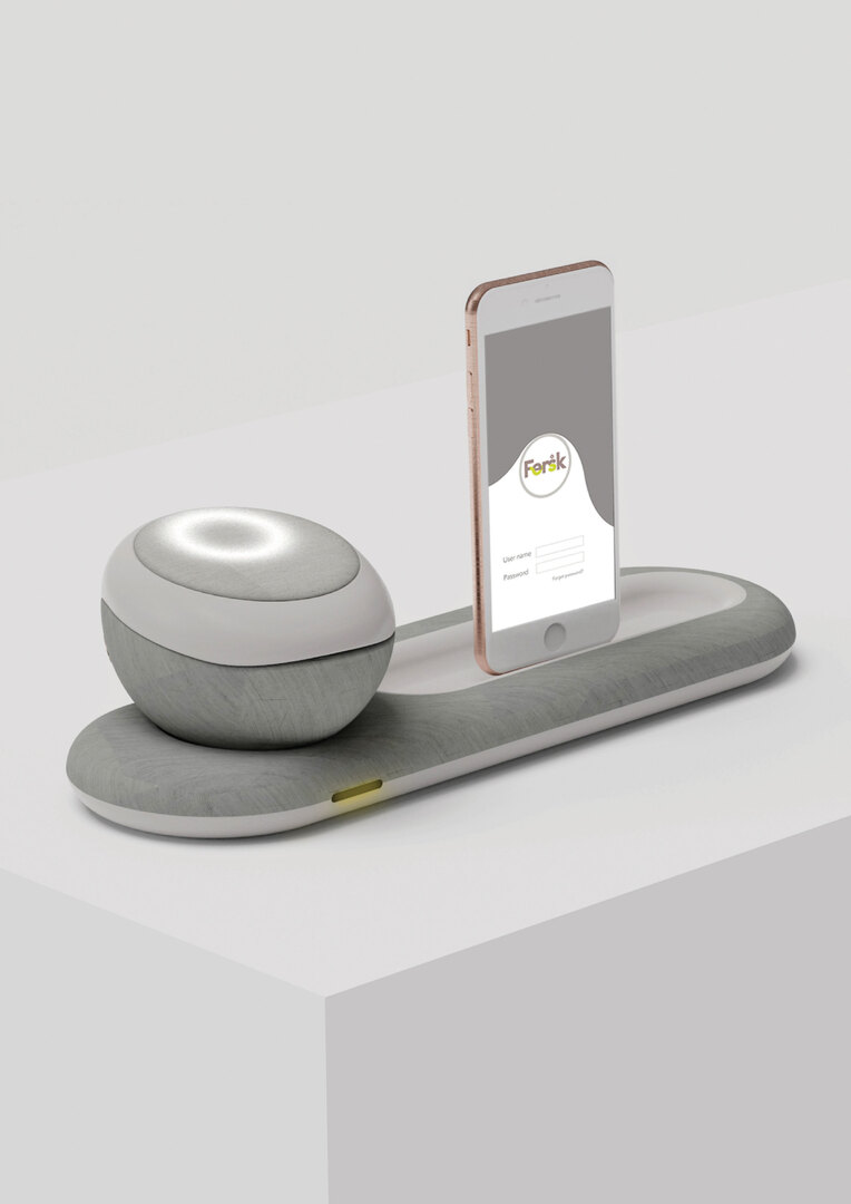 Fersk combines three functions to help its users deal with panic attacks through three stages. All the functions are dependent on the heart rate being picked up by the device. Firstly, a biofeedback treatment, which is commonly used in clinic treatments, helps the user understand their situation and re-centre themselves quickly. This is achieved via finger electrodes and a biochip that senses the user’s stress level by analysing HRV (heart rate variety), then showing the stress level and heart rate on the fabric screen. After which, the device offers a breathing guidance to help the user regulate their breathing. To further provide the user with a sense of safety, the user can slide open the cover to take in the fresh air that is generated by Fersk. Fresh air is known to help with anxiety. With the user’s data being store in an APP, Fersk can be used as a supplementary aid to clinic treatment. Panic attack sufferers should gradually establish their confidence with the device. When the user no longer needs the help of Fersk, the product comes with a recycle plan that is based on its condition of use. Red Dot Award: Design Concept | Concept | Wellness & Beauty