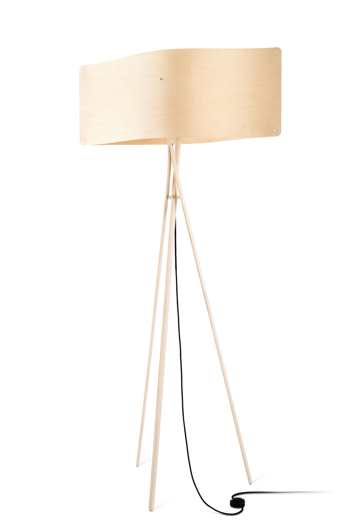 A lamp shade made of thin aircraft plywood and legs made of oiled ash wood characterise this floor lamp, which has a minimal ecological footprint. The choice of materials and the production is based on traditional Nordic craftsmanship as well as modern laser cutting technology. Finom is available in three different sizes and can be assembled without tools. The lamp provides direct upward and downward lighting while the light falling through the lamp shade has a decorative appeal.