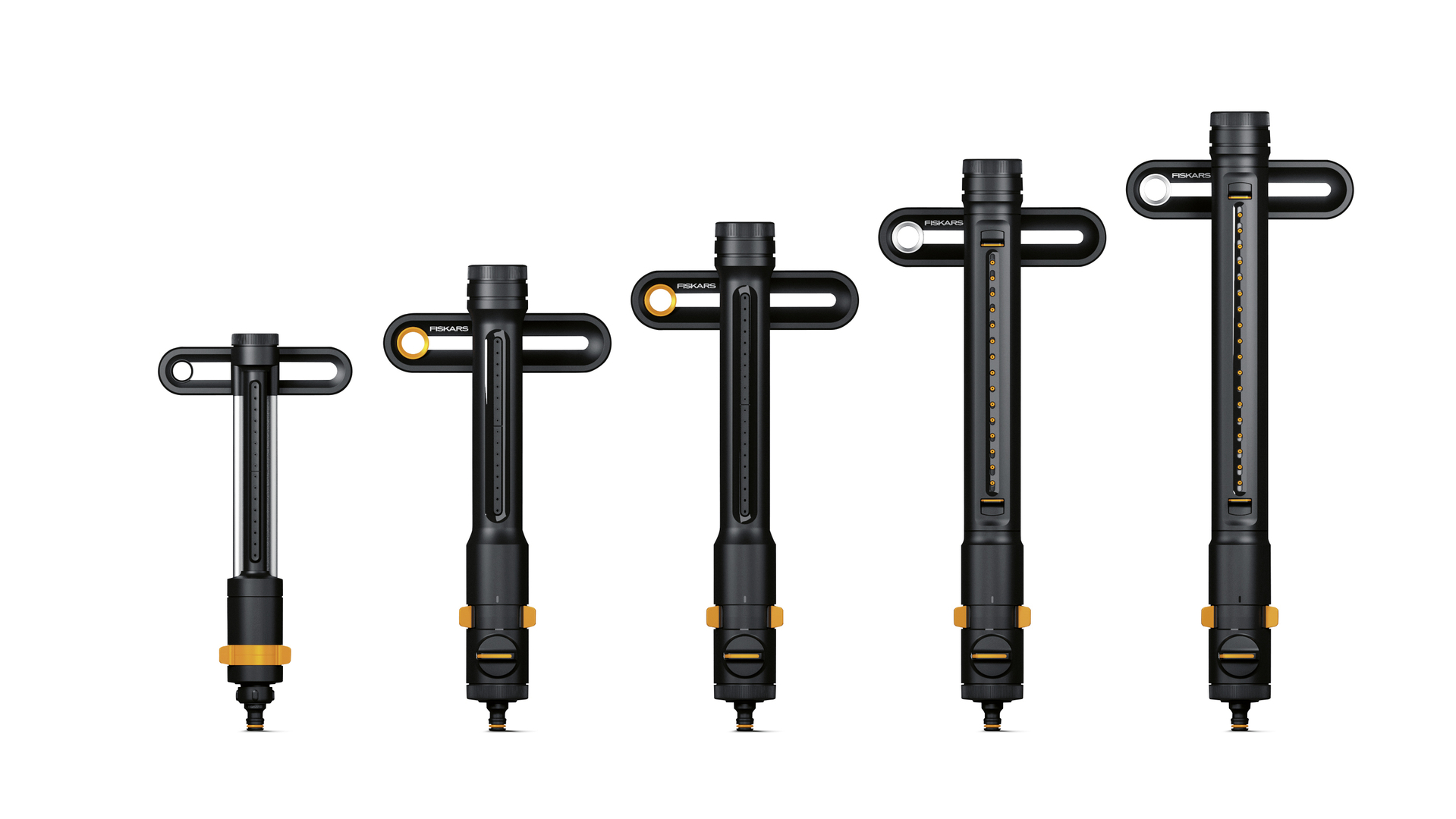 A lot of things can go wrong when you use a lawn sprinkler. One false move and you end up flooding the patio or showering passing pedestrians. Rarely does the water actually end up on the area of lawn it is meant to be irrigating. Fiskars considered this problem in depth and came up with a user-friendly solution that really works thanks to oscillating sprinklers. The range of each sprinkler can be individually adjusted to ensure even, efficient and precise irrigation and optimised water consumption. Width, range and direction are set with intuitive controls, and the flow rate is also infinitely variable. However, this convenient functional concept isn’t the only outstanding product feature. The jury was also won over by the fact that “an innovative storage and setup concept gives this oscillating sprinkler a brand-new aesthetic”. The jury further noted: “The controls are also carefully designed and easy to understand. The attention to detail is obvious, even when it comes to the little things that make the product so practical for the user.” For example, the sprinkler’s clever design permits uncomplicated cleaning, which also extends the product’s lifespan. A large, rust-free filter prevents dirt and debris from entering the sprinkler, and the soft spray nozzles can be cleaned between uses by simply wiping them down. Removable end caps also make it possible to thoroughly rinse the housing. The judges praised the concept for the “robust metal base, which gives the pivoting spray element excellent stability”. The compatibility of the universal connector with other brand products may seem initially confusing. After all, a company likes customers to remain loyal to its own brand. However, Fiskars included this feature because consumers are insistent that they don’t want to have to replace an entire system if they switch brands. It also reflects Fiskars’ very sustainable corporate philosophy of eliminating unnecessary purchases. Consistency is therefore another trademark – together with the certainty that over time people who purchase Fiskars products will always come to appreciate the combination of aesthetics, functionality and high quality that distinguishes the brand.