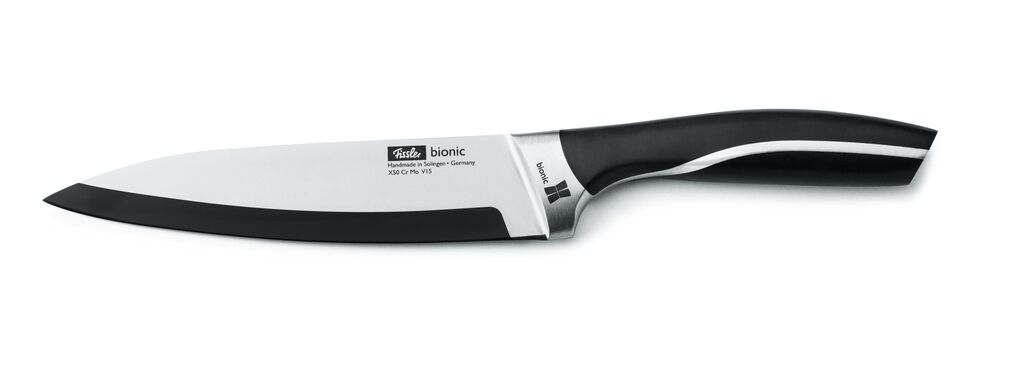 The Fissler bionic lies in the hand of the user in perfect balance. Its material and ergonomic qualities are superb. The curve of the elegant handle is particularly noticeable. By endowing the blade with innovative self-sharpening properties, this knife achieves a new form of durability. It has also been completely made by hand and so manages to combine tradition with the demands of the modern kitchen in a contemporary way.