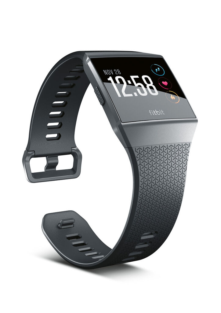 Inspired by parallels of health and space journey, the lightweight intelligent case, crafted from nano-molded, aerospace-grade aluminum, acts as the antenna for GPS and Wi-Fi. Fitbit Ionic integrates automatic heart rate, sleep and activity tracking technology and is water resistant to 5 ATM. Interchangeable bands include breathable honeycomb elastomer and micro-perforated high-quality leather.
