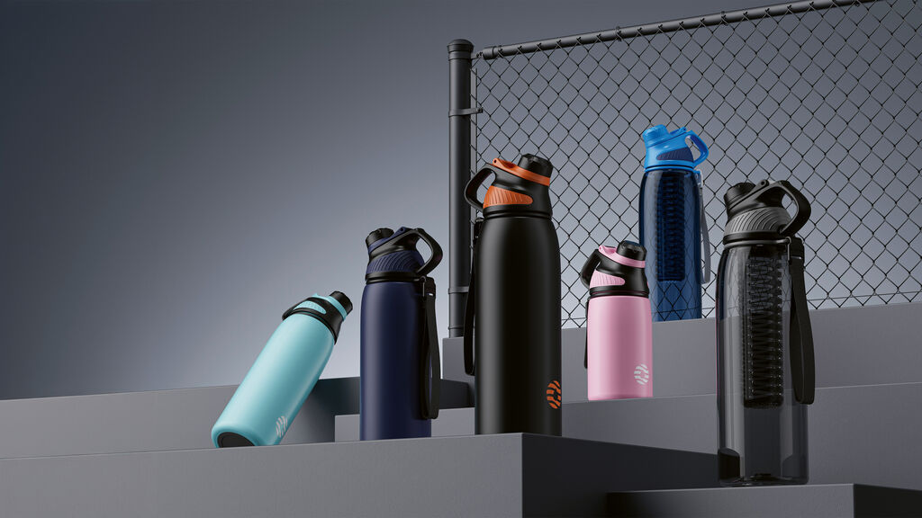 The FJbottle Sports Bottle was designed for ergonomic comfort. A lid with a sloping edge makes it possible to drink without having to tilt back your head. An integrated magnet mechanism holds the lid securely in position. The rounded shape of the bottle provides good grip, while a carrying handle and strap offer enhanced portability. The surface finish is abrasion resistant to increase the bottle’s service life and give it a modern appearance. All the materials used are food safe and certified as eco-friendly.
