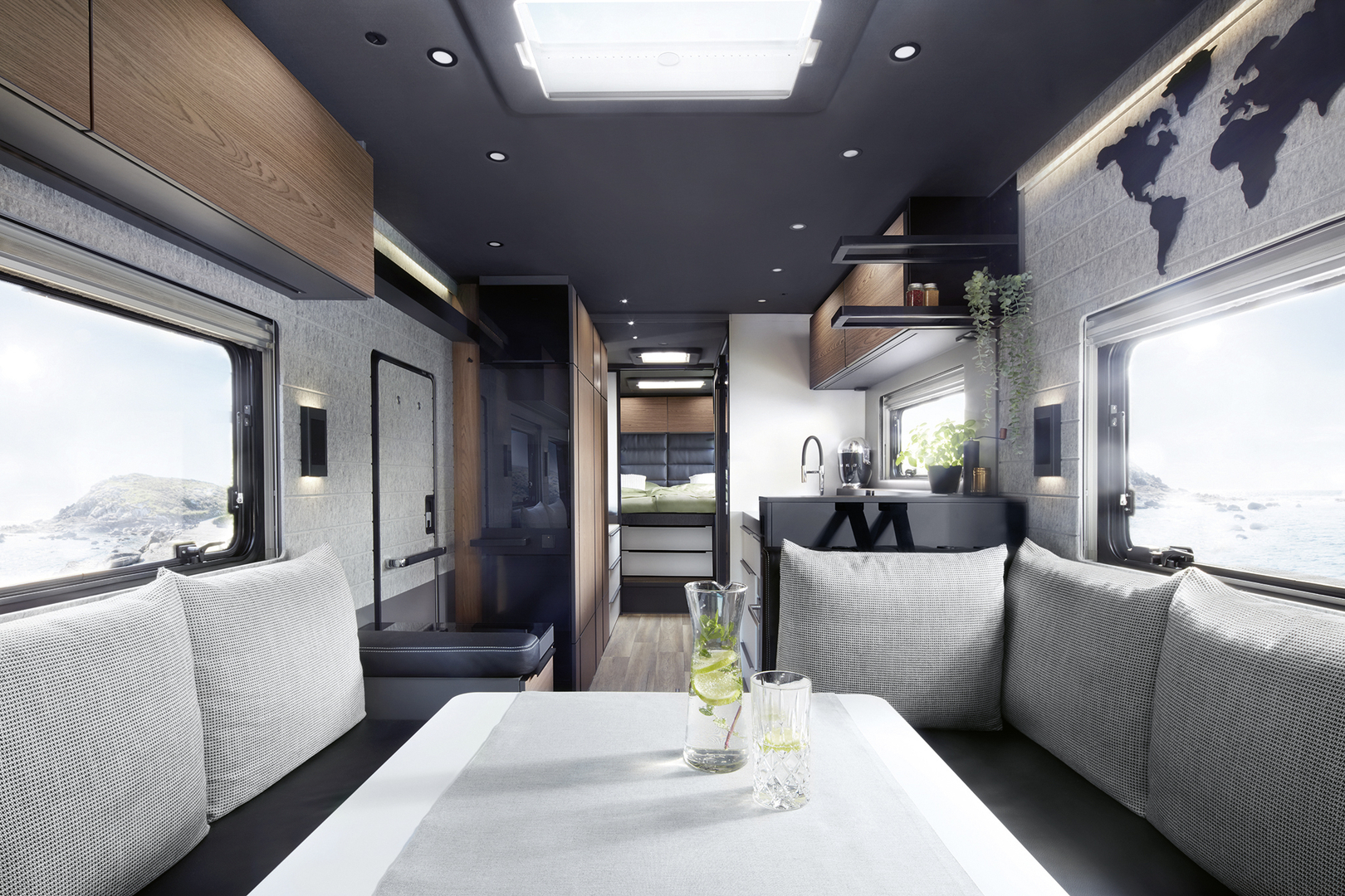 For a long time, the world of camping fans seemed to be divided into two groups: On the one hand, tent and van owners, who are flexible and adventurous, and on the other, motorhome owners, who are often a little older and looking for a certain level of comfort. The latter form of camping holiday in particular had a reputation for being a bit stuffy. However, since the coronavirus pandemic, much has changed in the camping industry and new target groups have come into focus – including at German motorhome manufacturer Niesmann+Bischoff. The Flair is a liner-class motorhome that was developed over a period of two years. It is characterised by a contemporary, elegant ambience that can be customised in many details and is designed to appeal to people with high aesthetic standards. While the exterior of the motorhome is kept rather straightforward and simple apart from the distinctive light signatures at the front and rear, the interior conveys a surprisingly generous feeling of space and the impression of a pleasantly reduced but very high-quality interior as soon as one enters. “In the interior design of the Flair, the choice of materials, surface design, shape and colour scheme are perfectly coordinated and create a strong feeling of openness, calm and clarity in which one immediately feels at home,” said the jury. Even visually, the interior is surprisingly spacious, characterised by a clear visual axis from the driver’s cab to the rear bed. The use of special materials is also striking. For example, the Flair has smoked glass sliding doors, cabinet surfaces made of high-quality real wood veneer, wall panelling with acoustic felt covering and a concrete-look wellness shower with a walk-in shower tray made of solid surface material. All elements are available in numerous colour and material variants. In addition, the Flair has many practical innovations such as a swivelling rear bench with belt seats, an intuitive lighting concept and a body door with a sensor-controlled opening angle that slightly closes automatically when the flap of the adjacent storage compartment is opened. “The space available here was optimised very efficiently and with numerous clever detailed solutions,” praised the jury. “All in all, the interior achieves a haptic and aesthetic quality that really sets new standards in the liner sector.”