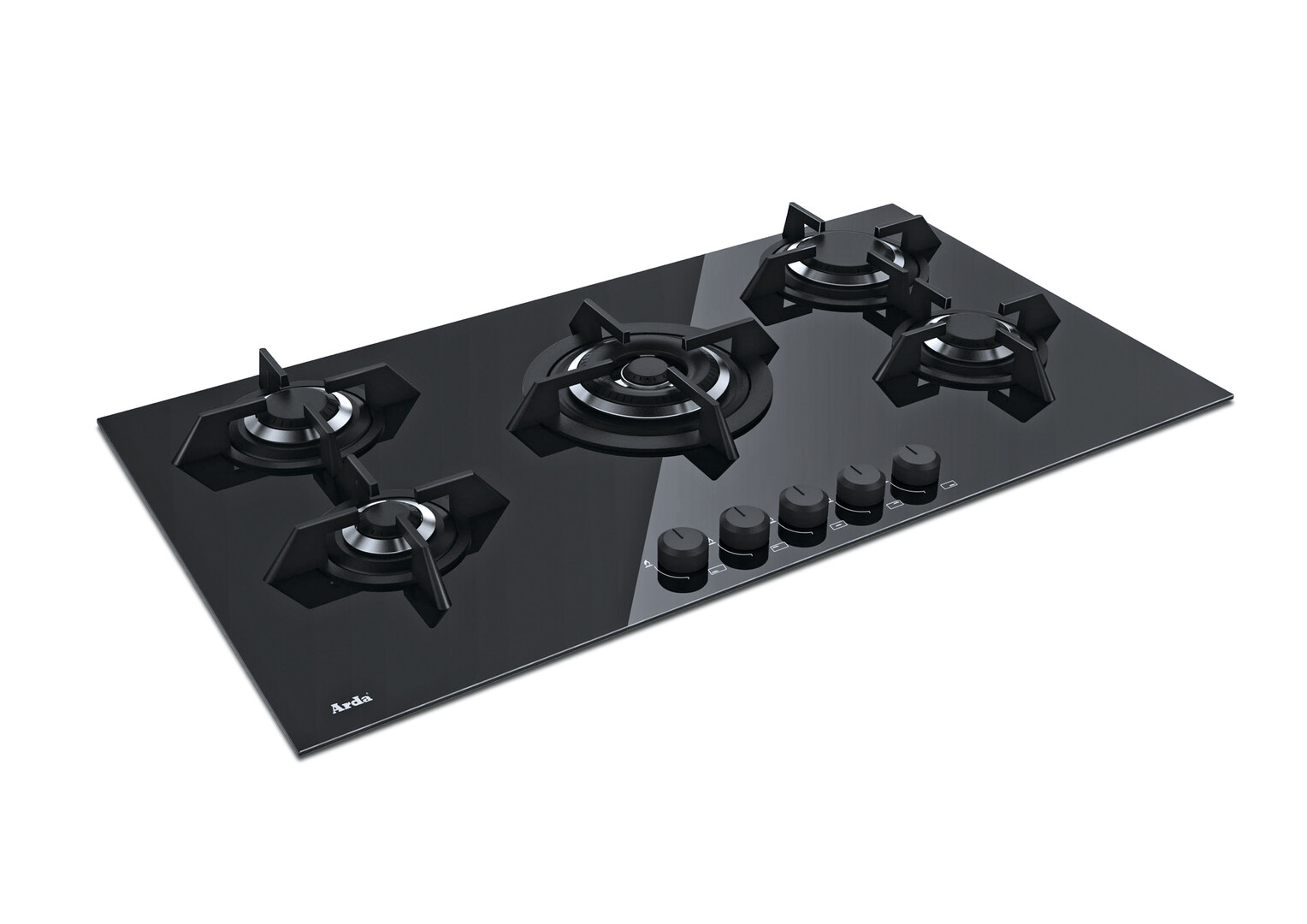 The gas cooktop of the Flat series is based on the flatly constructed hob series Defendi S4, for which a highquality glass ceramic is used. The glass ceramic surface is thermally resistant, safe and assures stable performance. The flame apertures of the heating elements are sloped so that the firing angle is increased and the heating power is concentrated. The pot supports and operating knobs are also sloped and thus contribute to a harmonious overall impression.