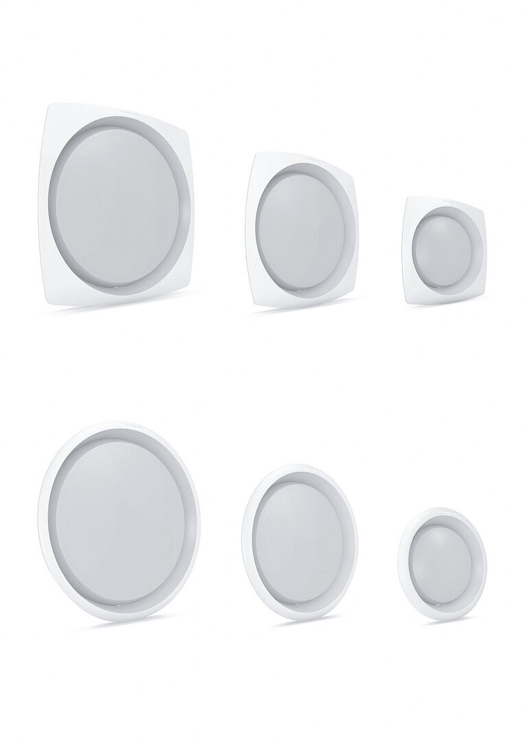 The Flat Series comprises round as well as square LED recessed lights with a low installation height of only 30 mm. They are available in three different sizes. The design is based on a minimalist approach and does not need a metal heat sink. The lights provide an output of up to 150 lumens per watt. In addition, a driver as well as a dimming function were integrated into the body. With a UGR value of below 19, the glare-free lighting is easy on the eye.