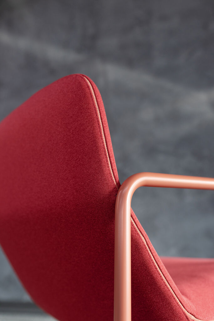 With its ergonomically shaped seat shell made of soft polyurethane foam, the Flexi Lounge M chair invites users to sit and relax. The combination of generous upholstery and the flexible upper section of the backrest ensures comfort even when sitting for long periods. The seat shell is held in place by a slim but striking metal frame. Decorative stripes on the sides of the upholstery create contrasting accents. Both the frame and the upholstered seat shell and armrests offer extensive customisation options.