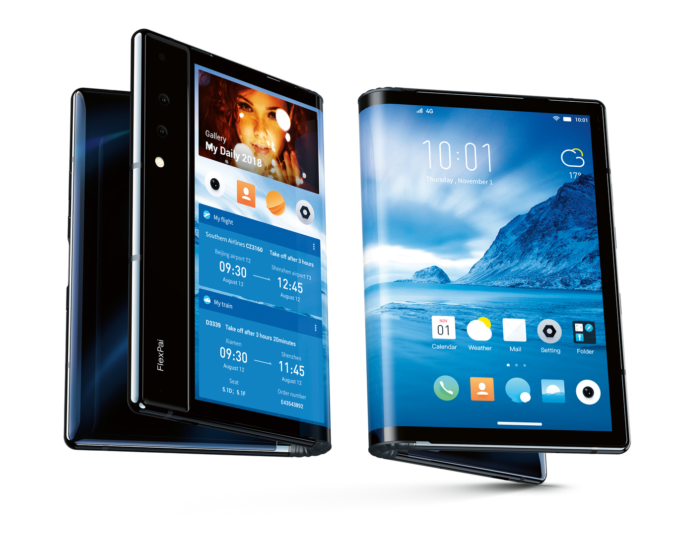 Thanks to an innovative, patent technology, development succeeded in creating a fully functional AMOLED display screen which can be folded to each side in the middle. The FlexPai smartphone can be folded over 200,000 times without breaking. Integrating a cutting-edge Snapdragon processor of the series 8, the device supports high-performance AI technology and is upgradable to 5G mobile reception. The camera has a 20 MP telephoto lens and a 16 MP wide-angle lens as well as dual viewing mode for normal photos and selfies.
