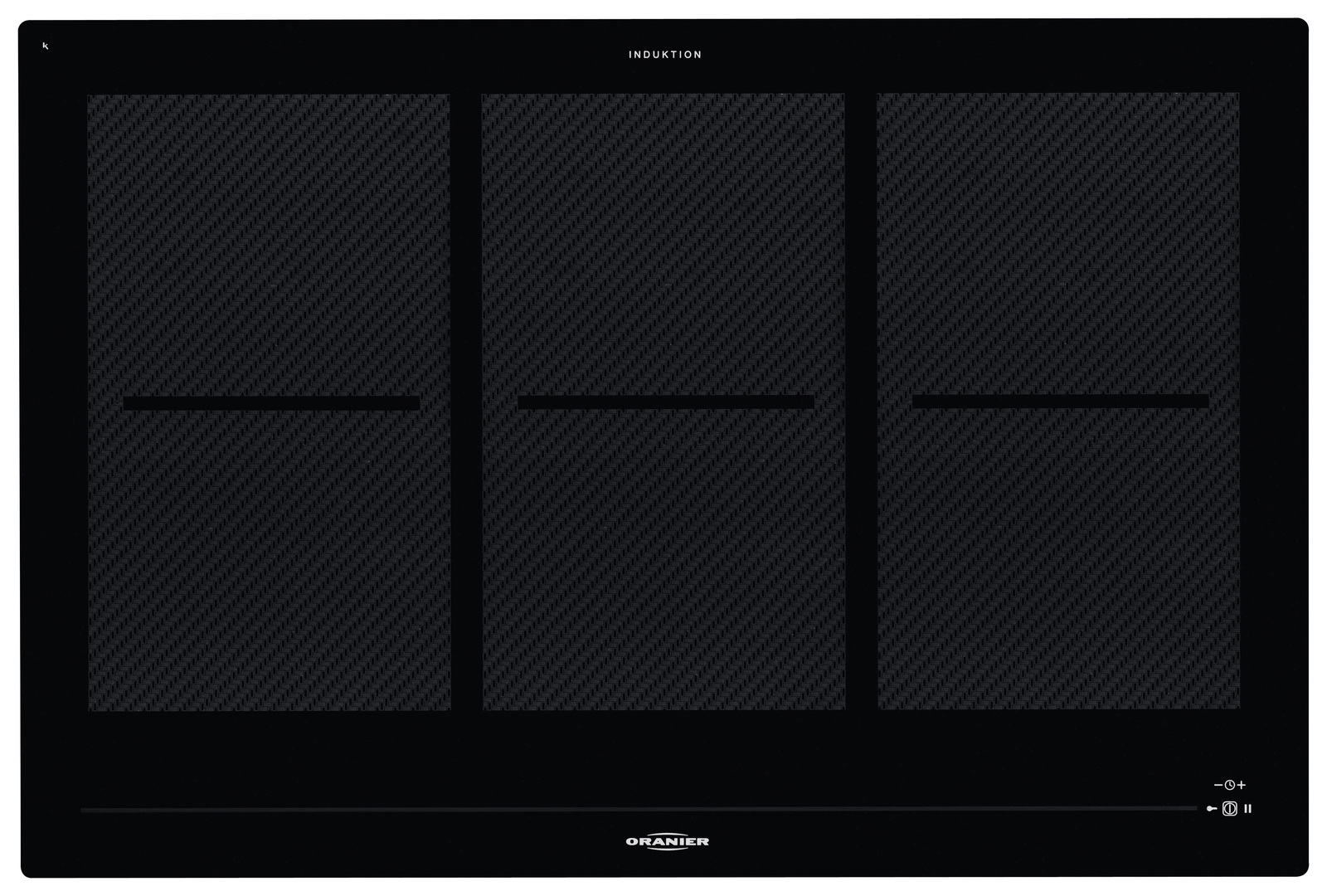 This free-zone induction hob with six cooking zones is distinguished by a pot position detection system. As soon as a pot is put down, the corresponding slider lights up and indicates which zone is to be regulated. The hob surface features a carbon-like, criss-cross braided structure, emphasising its high quality and protecting the surface. The appliance can be mounted flush or with stainless steel side strips.