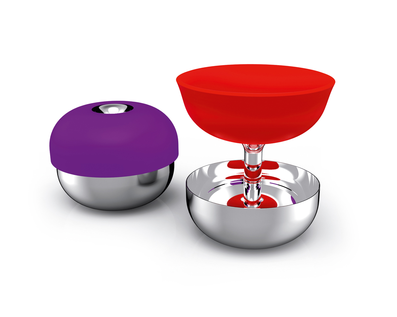 Flip Bowl attracts attention due to its sophisticated design and the interplay of high gloss stainless steel and shining bright silicone.