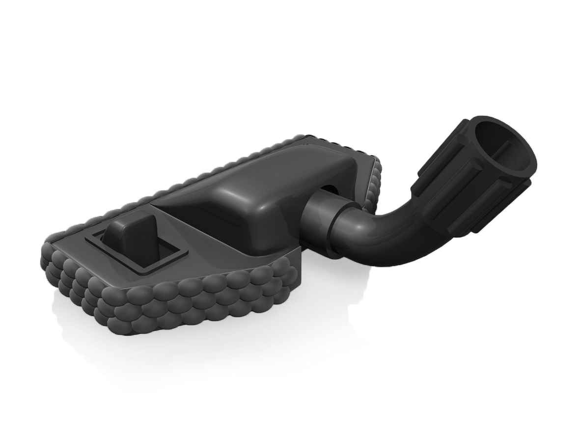 This product novelty is an abrasion protection for vacuum cleaner systems of all kinds. The flexibly usable cover is simply drawn over the floor nozzle of the particular cleaning device thus avoiding damages and abrasion marks on furniture, flooring and walls. Flofa is made of soft, stretchable plastic and is washable. Its knob structure cushions collisions and is reliably tear-resistant.