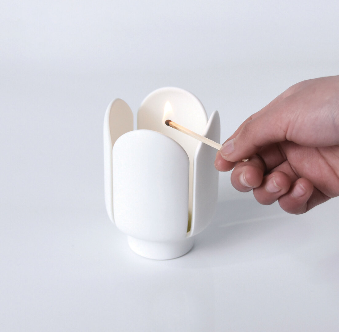 Flower Candlestick creates a magical atmosphere when the candle is lit. The flickering flame illuminates its petals to create a warm and tasteful mood in any room. The candlestick is elegant and sturdy, and is a wonderful decoration even when the candle is not lit. Red Dot Award: Design Concept | Concept | Interior Elements