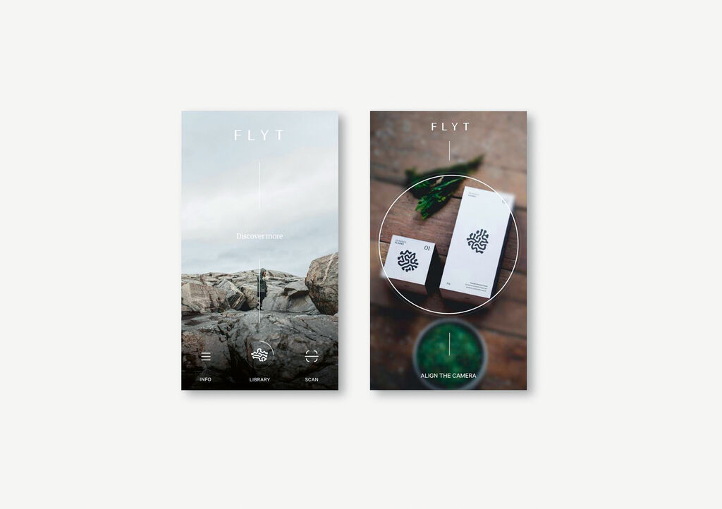 Flyt Seaweed is sustainably harvested in the deep Norwegian Sea. In order to reflect the organic beauty of seaweed, a visual language was developed which creates identifiable symbols – a language with hidden depths. These brand symbols were used on the front of the packaging, merchandising items and stationery. By scanning them with the brand app, customers will be able to find out more about the company as well as the harvest and production of the seaweed. Custom paper with the brand symbols embossed into the fabric was created to be used throughout the brand communication, from packaging to business cards.