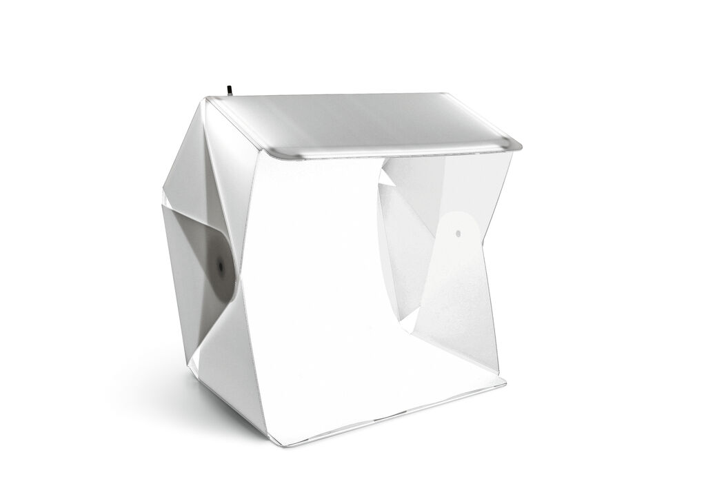 Foldio3 is a light-weight, portable mini-studio specially designed for product photography. Thanks to its compact construction, photographers can create an inviting setting in an instant. Its LED illuminators and three diffusers ensure brilliant illumination. Backdrops can be flexibly installed by unrolling and fixing them. Magnet spots simplify assembling the all-in-one studio, which can be easily folded when not in use and thus requires little space for storage.