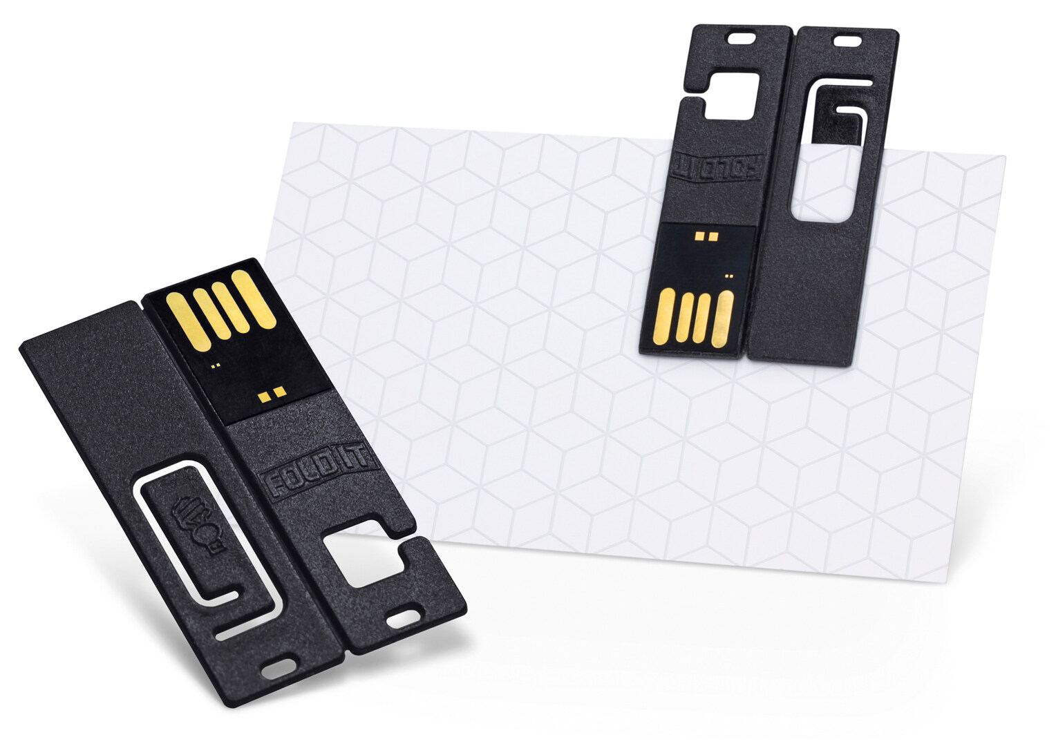 In times of increasing mobility, the FoldIT USB is pleasing with its innovative, thin design, thanks to which it can be simply integrated in the work documents underway.