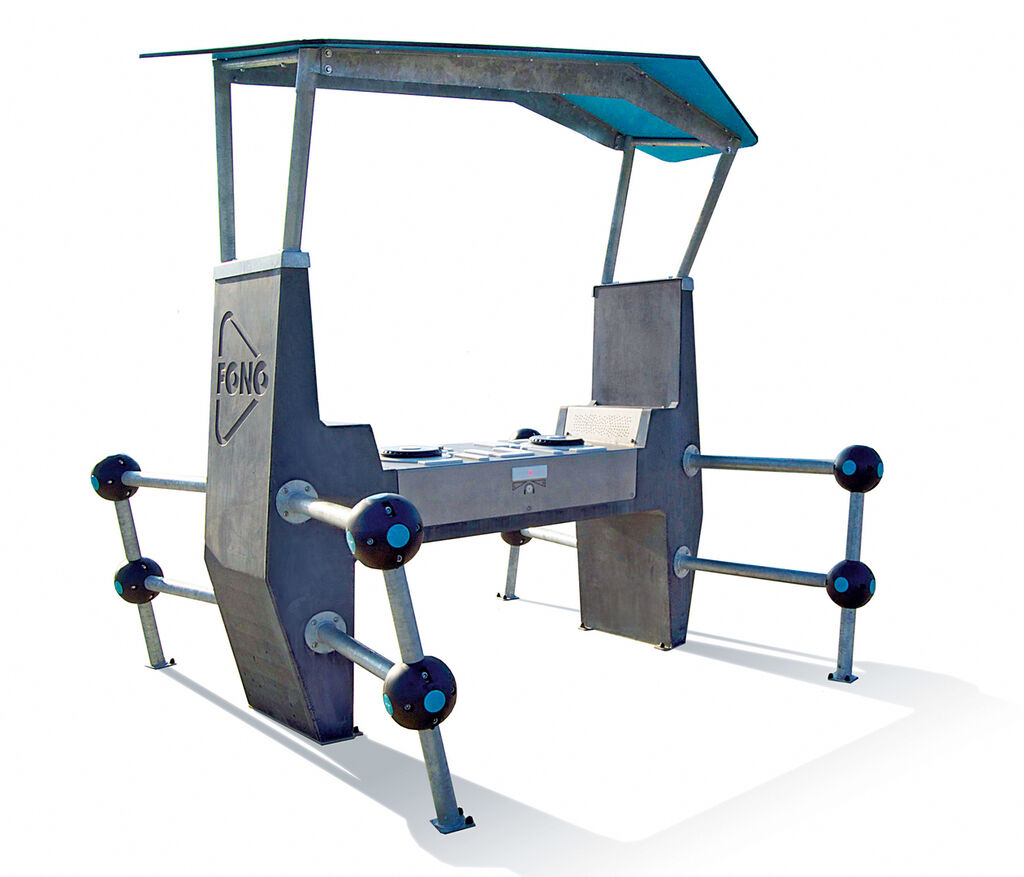 Fono is an outdoor DJ table, developed to offer young people the opportunity to be creative. What better way to achieve that than with music or, even better, acting as a DJ? Fono works in combination with the user’s mobile phone. Simply play the music on the mobile and place it on the control panel of the device. The music will immediately be amplified by the built-in loudspeakers. The rotating discs are used to produce DJ effects, mix music from two mobiles or to record one’s own music. Fono operates using solar power, is highly weather resistant and extremely hardwearing.