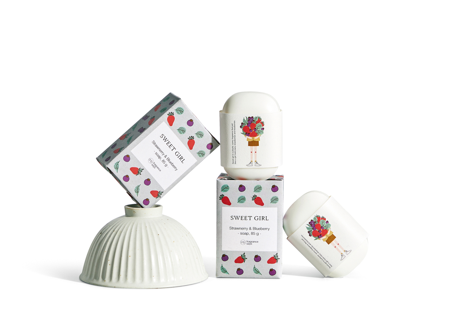 The “Fragrance says” range comprises perfumed soaps and candles as well as fragrance diffusers. It is directed at young women, who can choose their personal favourites from three fragrance variations. The colourful packaging provides a helpful guide. For example, “Sweet Girl” has a vibrant and summery aroma, with packaging which features a girl holding strawberries and blueberries. “Fresh Girl” is refreshing and passionate, as symbolised by a basket of oranges and lemons. The gentle floral aroma of “Elegant Girl” is communicated by the design with a bunch of fresh flowers.
