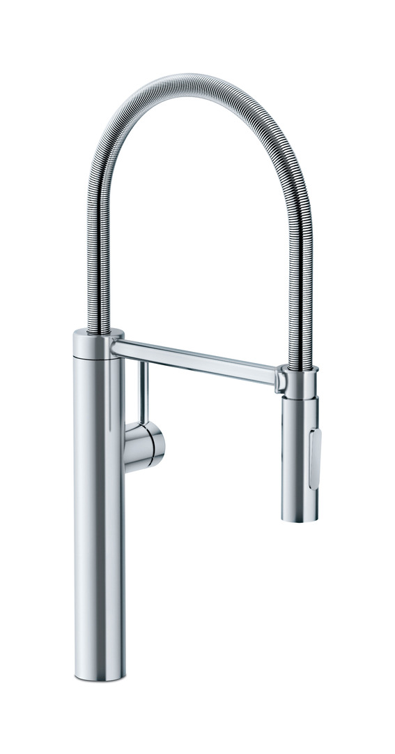 The Pescara kitchen tap series is characterised by a clear and elegant design. The taps have a pull-out spray outlet with magnetic holder. By means of a switch on the spout, the user can change conveniently between a normal flow and a spray function as well as a powerful flow option with greater range. The taps of the Pescara collection are available in stainless steel and chrome.