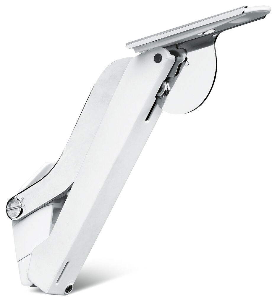 FREEspace / Free space is a hingeless, upward-opening flap fitting of a compact construction that only requires a very shallow installation depth of 63 mm. This makes it suitable for use even with very shallow cupboards. Despite its small size, it can securely support heavy flap weights. A fitting with a 400 mm flap height can for instance support front loads of 1 to 11 kg. Due to its strength and capacity, this model can therefore be used for a wide range of different application areas, thereby saving resources in transport and logistics, and enabling greater standardisation in production.