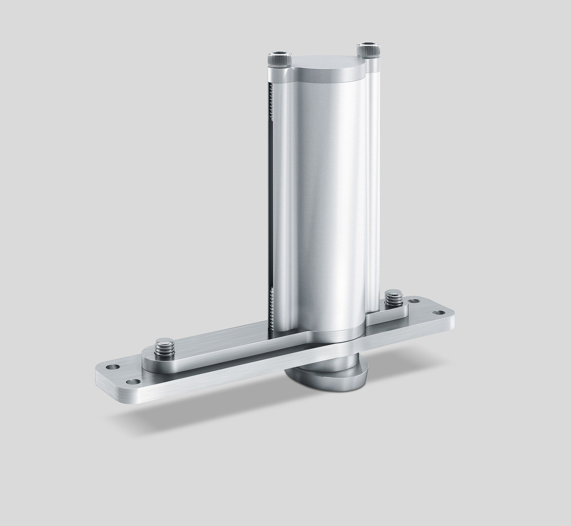 The innovative FritsJurgens hinge system is suitable for pivot doors. These are frameless doors that can be used as swivelling walls. When they are shut, they are almost invisible, but, when they are opened, they give a room structure. The technology needed to achieve this is concealed from view and is embedded in the top and bottom of the door. No fittings on floor or ceiling are required. This straightforward construction makes it possible to install pivot doors both in new and existing buildings.