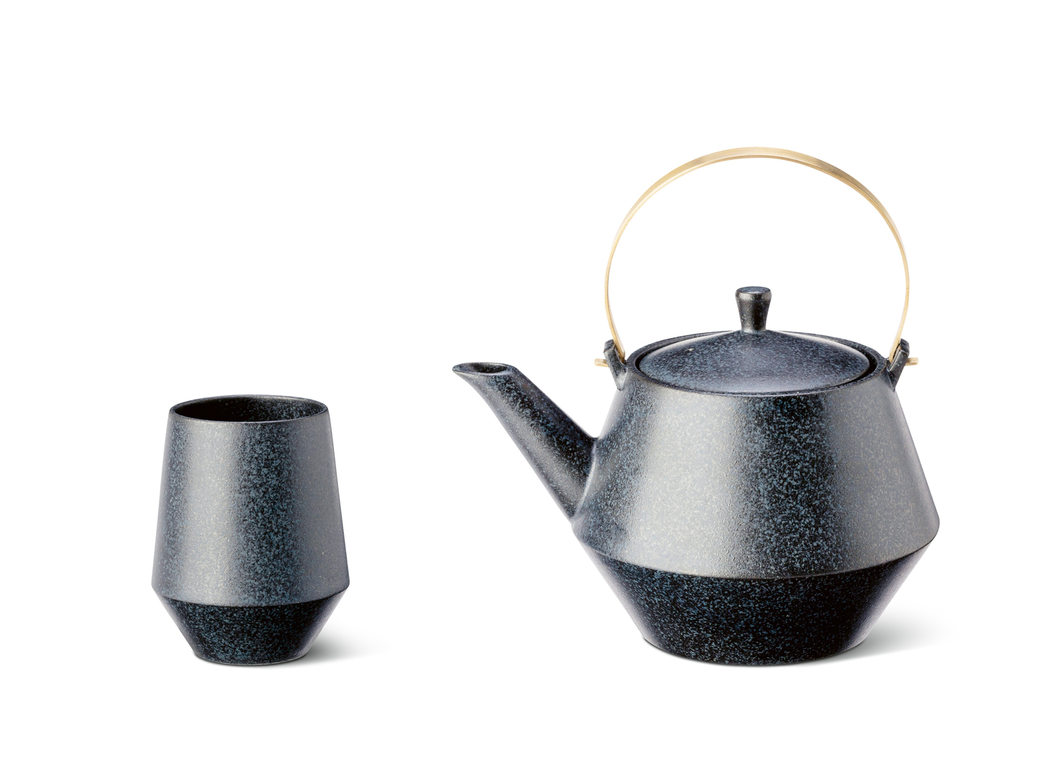 The Frustum tea set was designed for a modern lifestyle and with the idea of continuing Japanese tea culture. Inspired by the shape of traditional iron kettles, once common in the Tōhoku region, the teapot showcases typical design features such as a conical bottom and a slightly offset edge. The conical tea cup rests comfortably in the hand, while its narrow opening bundles the fragrance. The earthenware teapot and tea cups are available in white and black.
