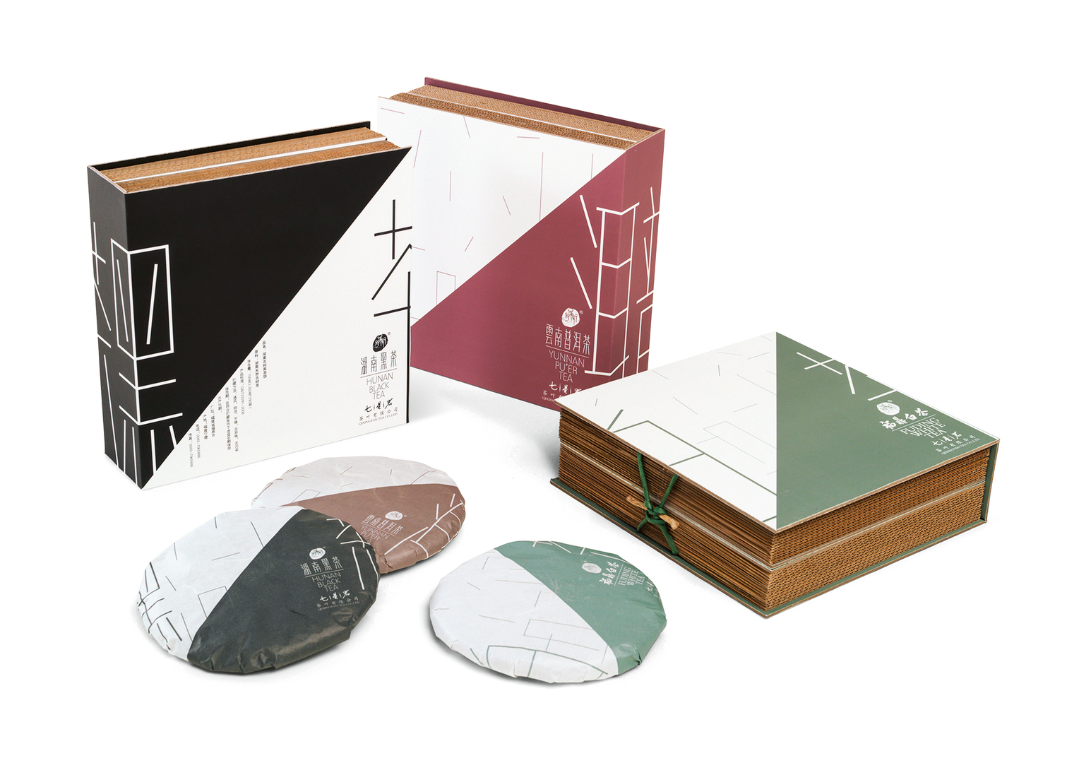 The packaging of this series of teas adopts a sophisticated book box structure as well as hollow design techniques. The overall colour scheme alternates between green, ochre and black to identify white tea, Pu-erh tea and black tea in an easy-to-grasp manner. The boxes feature coloured patterns that visualise the philosophy of yin and yang, as well as a characteristic structural design that not only integrates traditional elements of Chinese culture but also aims at demonstrating the profound tea culture connotation of the brand.