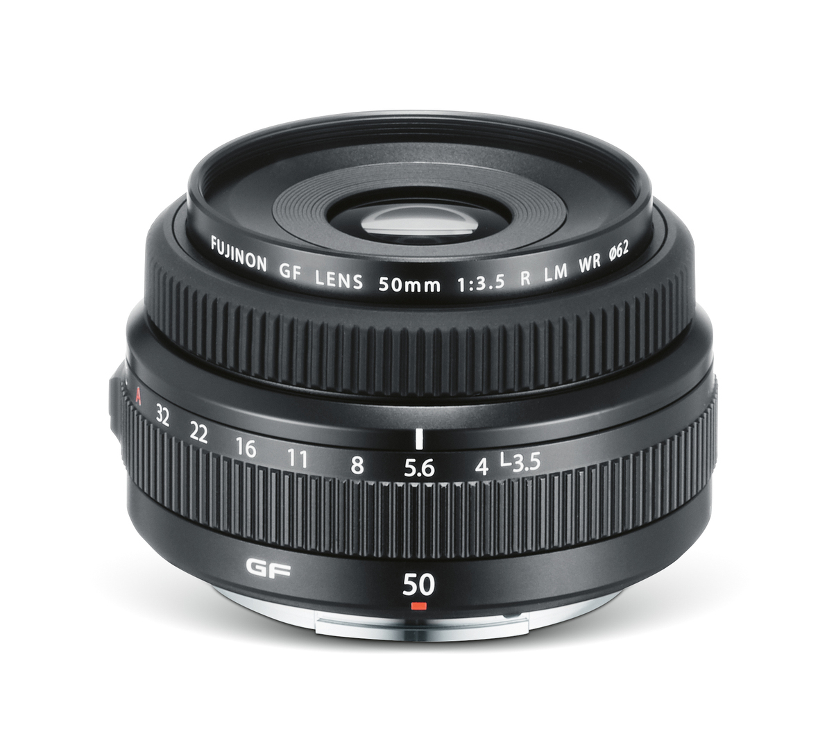 The GF 50 mm F3.5 R WR is designed as an interchangeable lens for the FUJINON GFX system of mirrorless medium-format lens cameras. It features a viewing angle of 35 mm and is installed in a very light and slim casing. When used with the GFX 50R, the lens provides natural images and is suitable for shooting situations where larger cameras cannot be used. The weatherproof lens tube is sealed against splash water and dust.