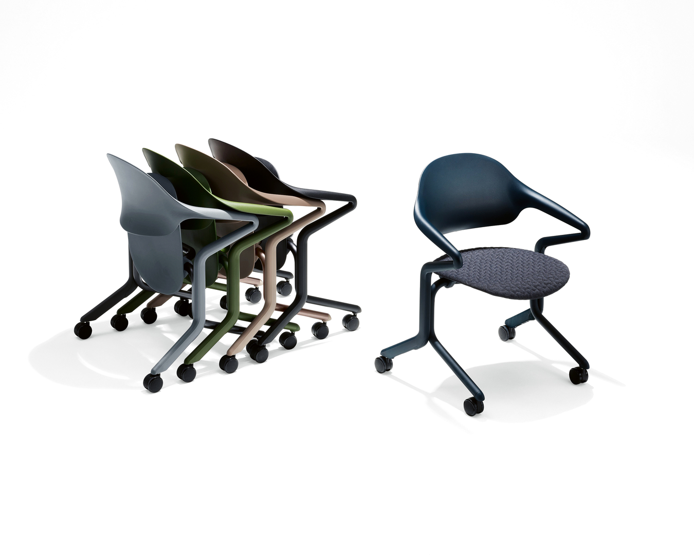 “The chair is a very difficult object”, said Ludwig Mies van der Rohe, “it is almost easier to build a skyscraper.” – And what applies to a normal chair is even more true for an office chair, which has to fulfil particularly high ergonomic requirements. In the case of the Fuld Nesting Chair, the US manufacturer Herman Miller set a further requirement: The chair had to be stackable. The Munich-based Diez office was commissioned to design the chair and, thanks to its experimental approach to the design, ultimately mastered the task with flying colours, as the jury found: “The challenge of designing a stackable office chair that is simultaneously foldable and has castors for mobility cannot be overestimated,” said the jury. “The Fuld Nesting Chair manages to cover all the essential functions in a convincing way.” Stackable to save space when not in use, the Fuld Nesting Chair does indeed set new standards for seating furniture – both aesthetically and functionally. The lightweight design dispenses with the X-shaped frame that is common in this category. Instead, it adopts the basic shape of an inverted “Y” – an innovative one-piece construction in which the backrest, tubular arms and rear legs are made from a single piece. The backrest is slightly elasticated and the seat with 3D knitted fabric can be easily folded up. Thanks to this design, the chairs can be stacked horizontally rather than vertically. “The core idea behind Fuld is that they can be nested like shopping trolleys,” explains Stefan Diez. This not only reduces the effort involved, but also makes it possible to arrange almost any number of chairs in moving rows. What is more, the chair is made from just two materials and can be easily recycled at the end of its life cycle. “The Fuld Nesting Chair not only impressed with its high level of functionality,” said the jury, “the quality of use is also outstanding. It offers the necessary seating comfort and the backrest provides ergonomic support. And as a stacking chair, the lightweight construction and castors make it easy for users and building management to set up and stow away – a really sophisticated design.”