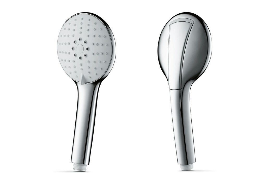 The basic idea behind the design of the Fusion hand shower was to unite several functions, complementing the available choice of showering modes with an innovative setting. It integrates an additional wide-water outlet in the back of the shower head, which opens at the touch of a button to give off a powerful, straight spray jet. This has a particularly practical effect and can be used, for instance, for quick and effective cleaning of the fittings or wall tiles.