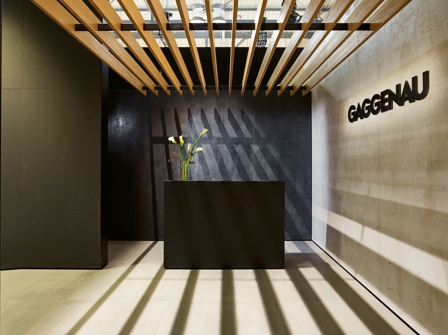 The booth and design concept for the company Gaggenau at the EuroCucina 2018 in Milan, Italy, was developed to stage the products of the company’s Vario cooling 400 series. By deconstructing elements of “grand architectural statements”, the idea was to create a sequence of architectural gestures that correspond with the rituals of domestic culture. The Gaggenau Home concept implied a full-scale representation of an “aspirational” domestic space, focused around an open-plan kitchen. The home included an entrance area, garage, living space and garden.